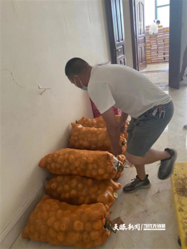 “通過多方不懈努力,今天我們上午從石板疫情防控專班運回了3噸土豆。我們現在正在準備裝袋工作,計劃在今天之內將采購的這批面條和土豆免費發放給每一個商戶,以解大家的燃眉之急。”貴州天利機電市場集團有限公司常務副總經理莊龍華介紹說,貴州天利機電城此次疫情防控一線上,周康勇、屠楠、張慶周、馮垚松、嚴志勇、王普等6名共產黨員組成的黨員先鋒隊挺身而出,堅守在防疫一線。同時,市場內廣大商戶也踴躍報名參加志愿者隊伍,為疫情防控出力、流汗,為園區筑牢群防群控防線注入力量。